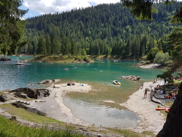 It was a hot and sunny Sunday when we decided to head to the Caumasee. Unfortunately this was not one of our better-planned outings and was all a bit last minute. It was also about a two-hour drive, so we didn’t get there until after noon and all the parking spots were taken! Luckily Himself had a brainwave and remembered that he’d once hiked to the lake from nearby Laax, where we found a half-empty car park, phew.