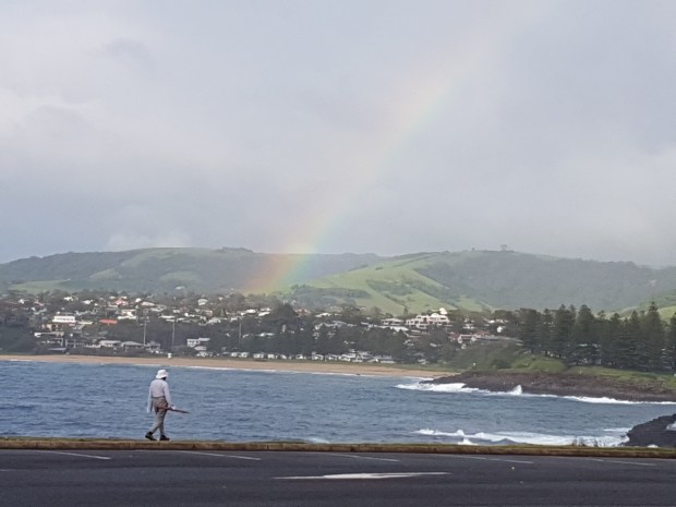 Photo: from this morning’s run – this gent told me (from a safe distance) to turn around and see the rainbow! I snapped a pic of him as he walked away.