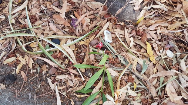 sticks and gumleaves and sand